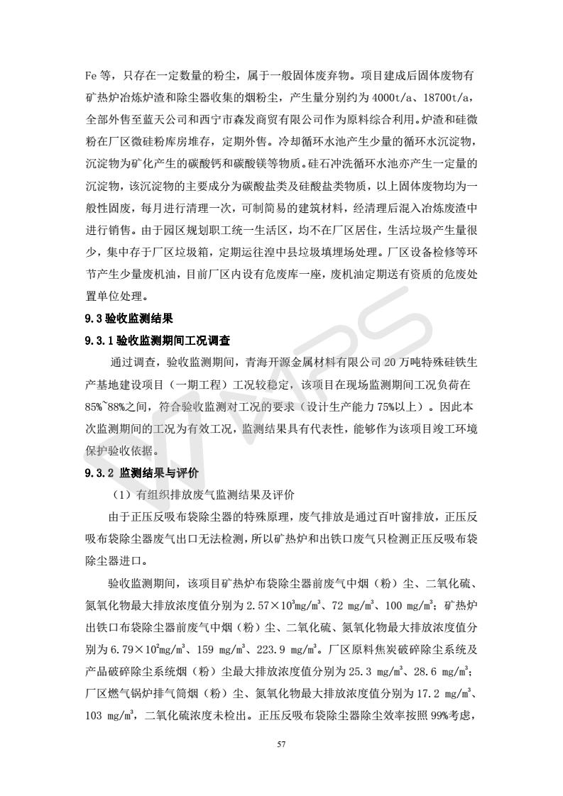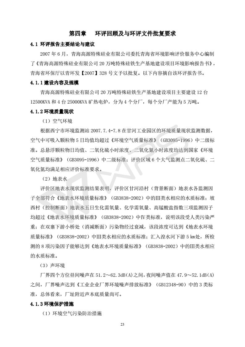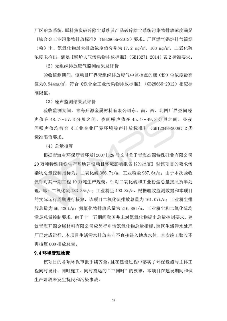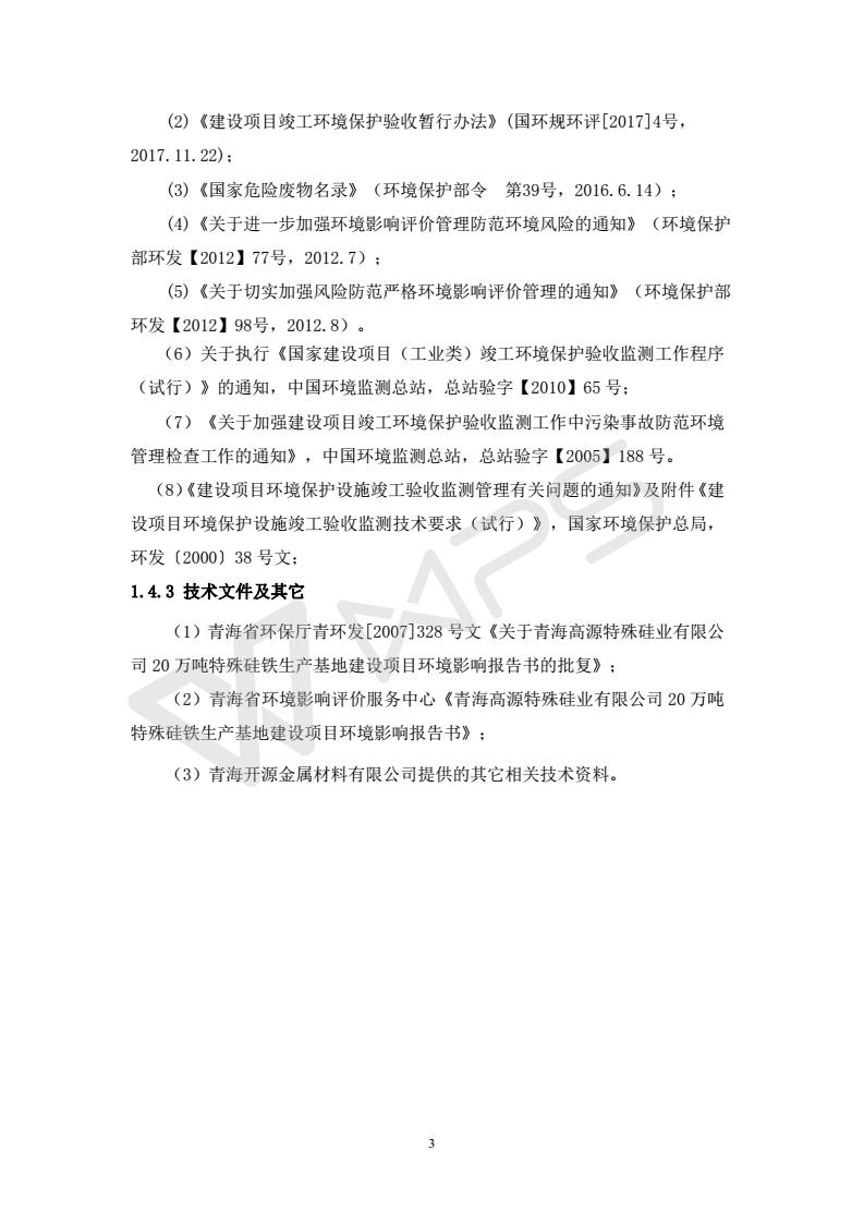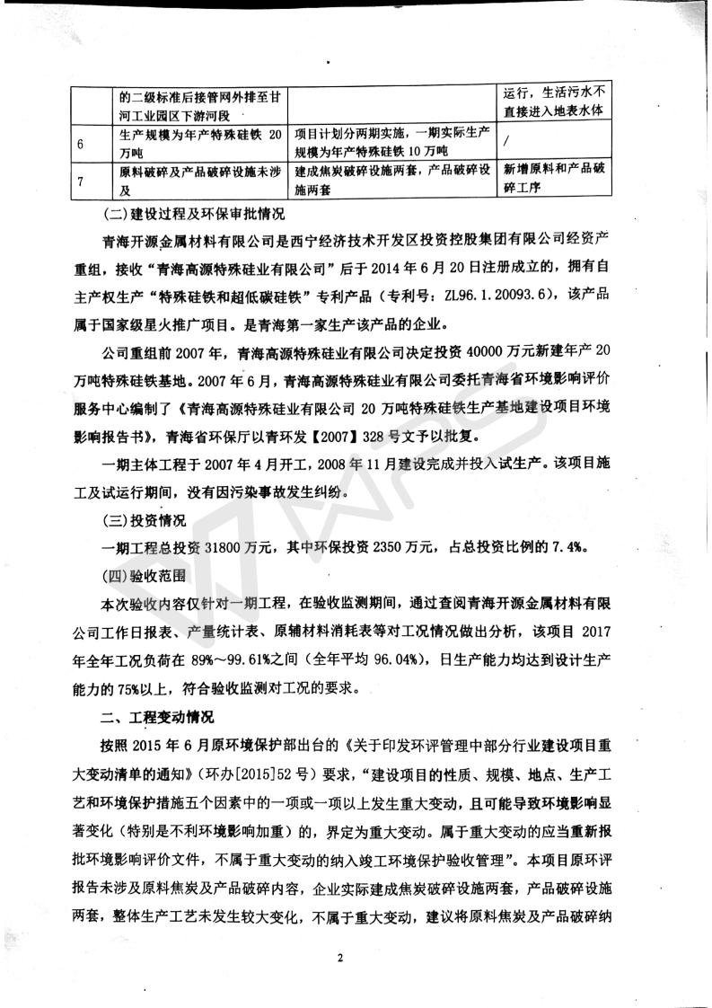 青海開源金屬材料有限公司20萬噸特殊硅鐵生產(chǎn)基地建設(shè)項(xiàng)目(一期工程)竣工環(huán)境保護(hù)驗(yàn)收報(bào)告書會(huì)后修改20180521