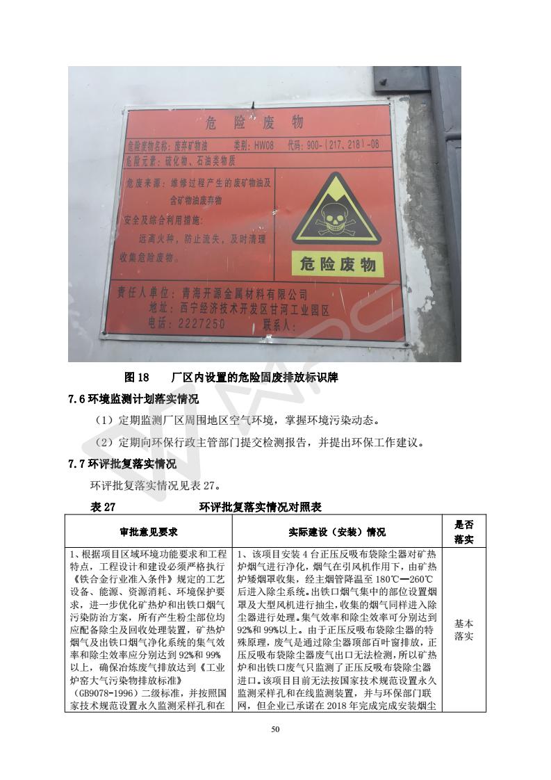 2018年1月11日,青海開源金屬材料有限公司組織召開20萬噸/年特殊硅鐵生產(chǎn)基地建設(shè)項(xiàng)目(一期工程)竣工環(huán)境保護(hù)驗(yàn)收會(huì)。 青海開源金屬材料有限公司20萬噸特殊硅鐵生產(chǎn)基地建設(shè)項(xiàng)目(一期工程)驗(yàn)收組意見.