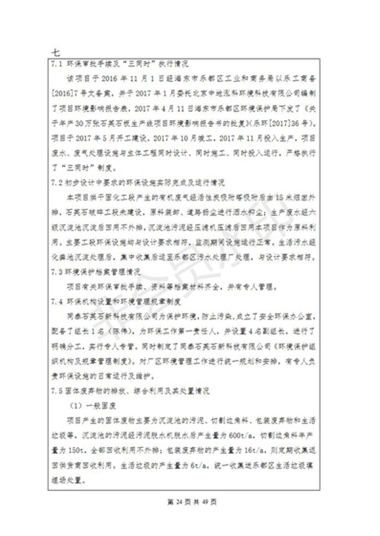 根據(jù)中華人民共和國(guó)國(guó)務(wù)院令第253號(hào)《建設(shè)項(xiàng)目環(huán)境保護(hù)管理?xiàng)l例》(中華人民共和國(guó)國(guó)務(wù)院令第682號(hào)《國(guó)務(wù)院關(guān)于修改〈建設(shè)項(xiàng)目環(huán)境保護(hù)管理?xiàng)l例〉的決定》和《建設(shè)項(xiàng)目竣工環(huán)境保護(hù)驗(yàn)收暫行辦法》,嚴(yán)格依照有關(guān)法律法規(guī),建設(shè)項(xiàng)目環(huán)境保護(hù)設(shè)施驗(yàn)收技術(shù)規(guī)范,本項(xiàng)目環(huán)評(píng)報(bào)告表和環(huán)保審批部門(mén)審批意見(jiàn)以及企業(yè)自行驗(yàn)收相關(guān)要求等對(duì)本項(xiàng)目進(jìn)行驗(yàn)收,本項(xiàng)目符合環(huán)保驗(yàn)收條件,可以通過(guò)環(huán)保驗(yàn)收。 海東市樂(lè)都區(qū)同泰科技有限公司竣工環(huán)境保護(hù)驗(yàn)收監(jiān)測(cè)報(bào)告公示