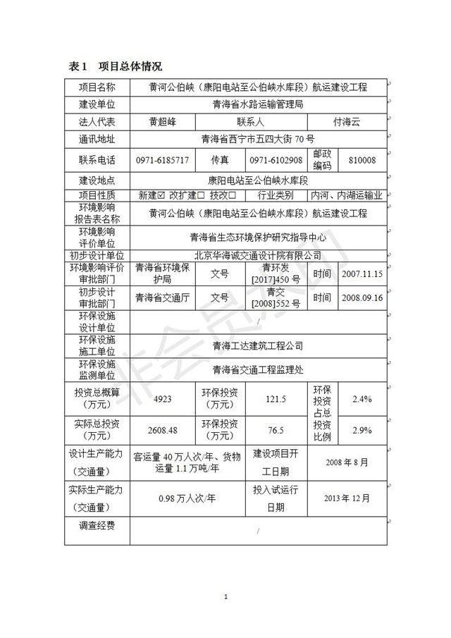 黃河公伯峽(康楊電站至公伯峽水庫(kù)段)航運(yùn)建設(shè)工程竣工環(huán)境保護(hù)驗(yàn)收調(diào)查報(bào)告表公示發(fā)布日期:(2018-11-16) 點(diǎn)擊次數(shù):2476 |