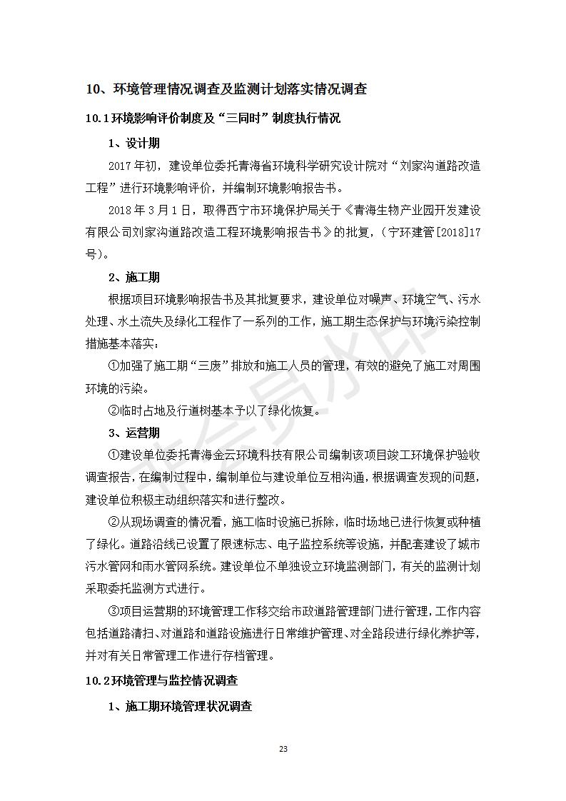 根據(jù)中華人民共和國(guó)務(wù)院令第682號(hào)《國(guó)務(wù)院關(guān)于修改〈建設(shè)項(xiàng)目環(huán)境保護(hù)管理?xiàng)l例〉的決定》和《建設(shè)項(xiàng)目竣工環(huán)境保護(hù)驗(yàn)收暫行辦法》(國(guó)務(wù)院令682號(hào)),劉家溝道路改造工程竣工環(huán)境保護(hù)驗(yàn)收內(nèi)容(包括竣工環(huán)境保護(hù)驗(yàn)收調(diào)查報(bào)告和驗(yàn)收意見(jiàn))公示如下: 一、項(xiàng)目名稱(chēng):劉家溝道路改造工程 二、地點(diǎn):青海省西寧市城北區(qū)生物園區(qū) 三、建設(shè)單位:生物產(chǎn)業(yè)園開(kāi)發(fā)建設(shè)有限公司 四、建設(shè)內(nèi)容:劉家溝道路經(jīng)改造后全長(zhǎng)1533m,道路呈東西向展布,道路紅線(xiàn)為30m。設(shè)計(jì)時(shí)速為40km/h,雙向4車(chē)道。 五、公示時(shí)間:二〇一九年三月十四日至二〇一九年四月十一日 六、聯(lián)系人:張工 公示期間,對(duì)上述公示內(nèi)容如有異議,請(qǐng)以書(shū)面形式反饋,個(gè)人須署真實(shí)姓名,單位須加蓋公章。