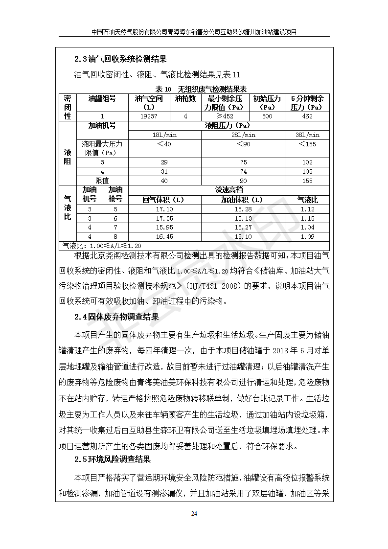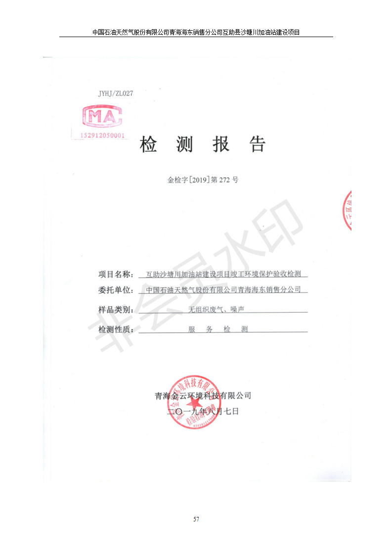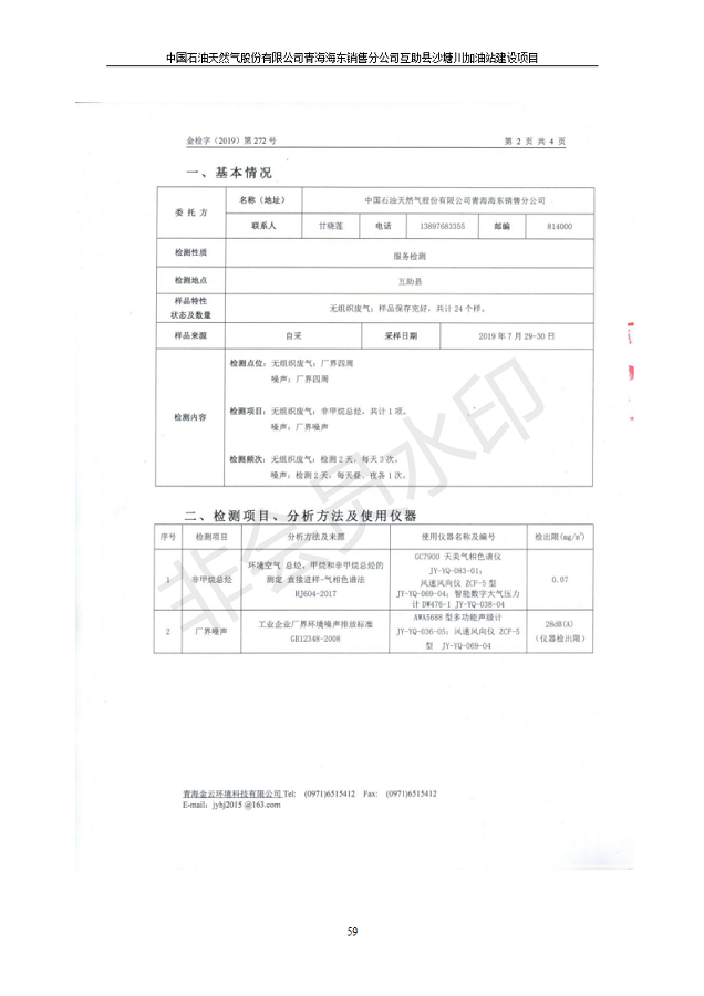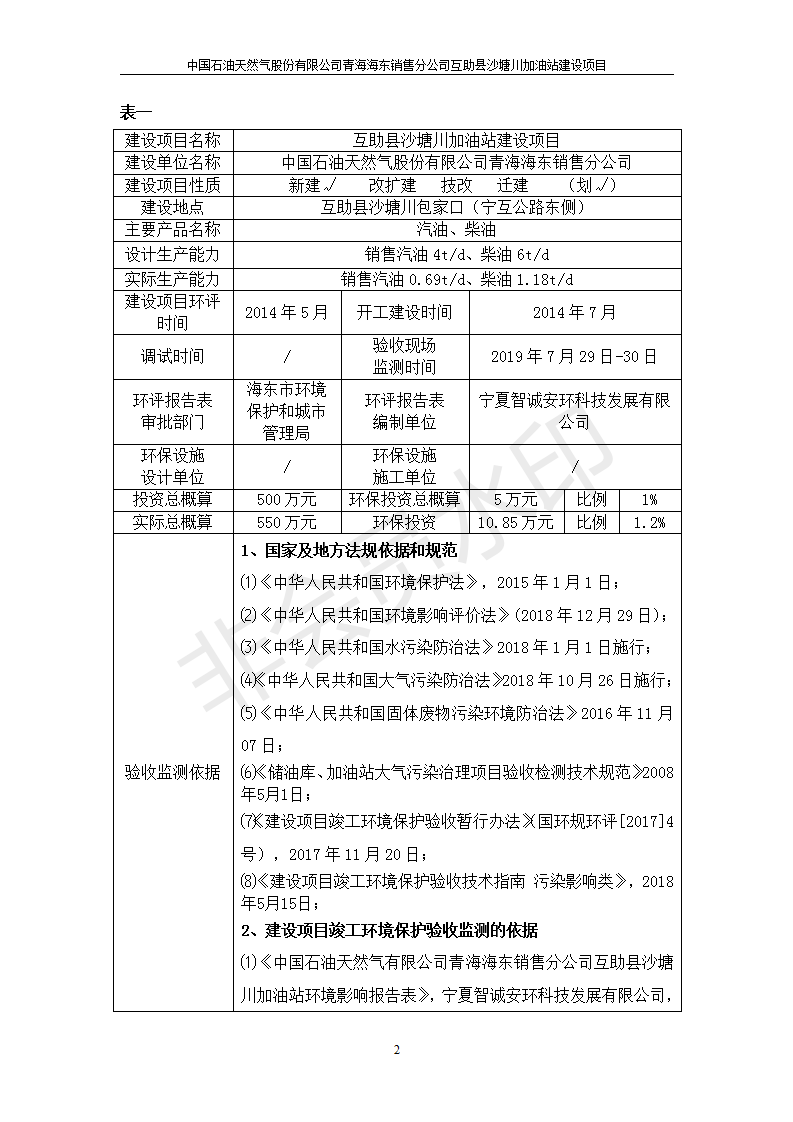 互助縣沙塘川加油站建設(shè)項(xiàng)目竣工環(huán)境保護(hù)驗(yàn)收監(jiān)測(cè)報(bào)告表發(fā)布日期:(2019-9-27) 點(diǎn)擊次數(shù):2178 |