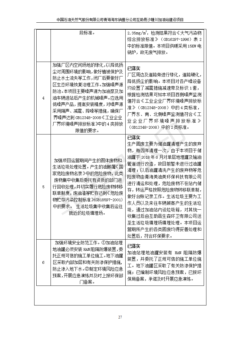 | 上一篇:互助縣東環(huán)路加油站改建項(xiàng)目竣工環(huán)境保護(hù)驗(yàn)收監(jiān)測(cè)報(bào)告表公示 | 下一篇:食品生產(chǎn)加工配送服務(wù)體系建設(shè)項(xiàng)目 竣工環(huán)境保護(hù)驗(yàn)收監(jiān)測(cè)報(bào)告表公示 |
