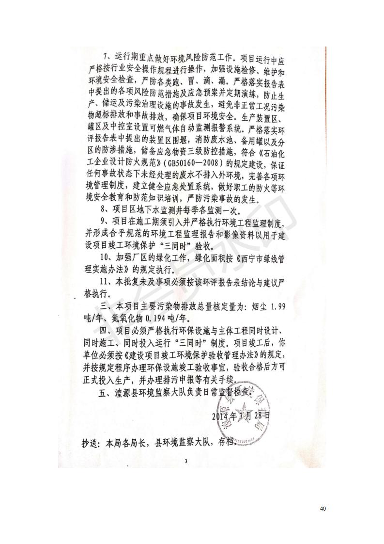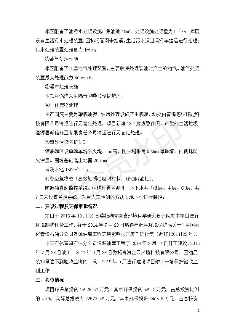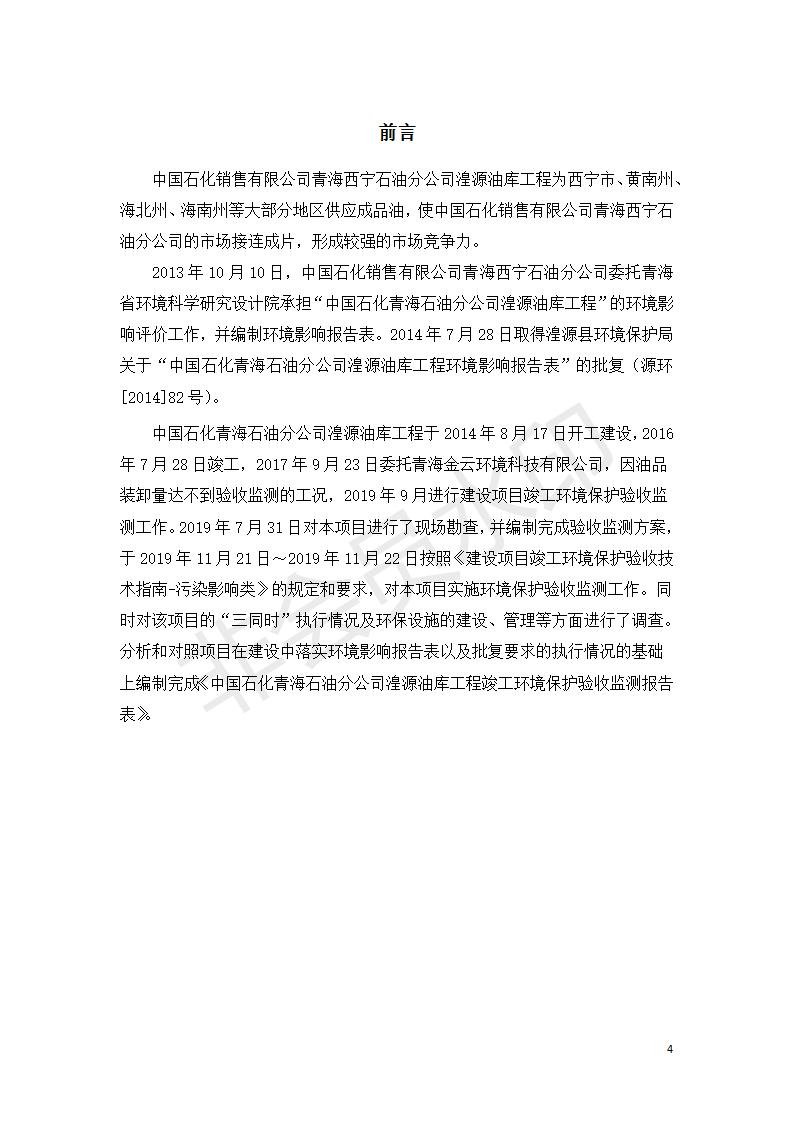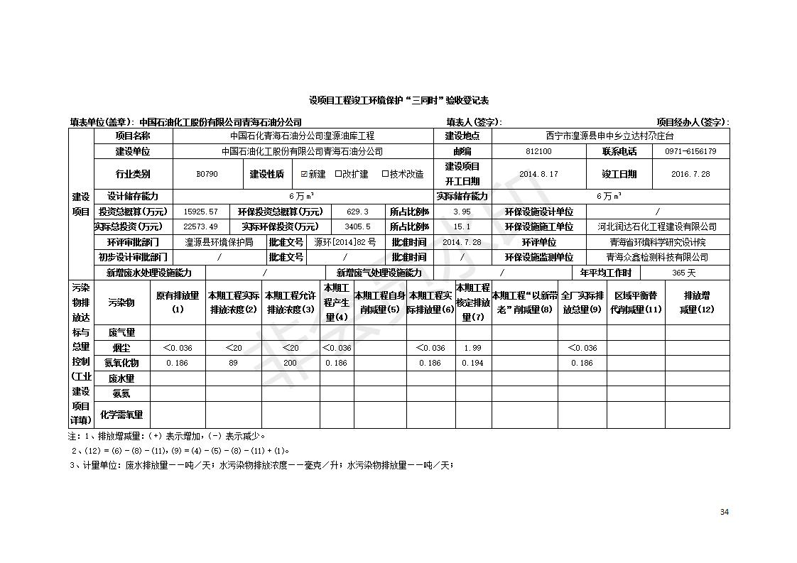 據(jù)中華人民共和國國務(wù)院令第682號《國務(wù)院關(guān)于修改〈建設(shè)項(xiàng)目環(huán)境保護(hù)管理?xiàng)l例〉的決定》和《建設(shè)項(xiàng)目竣工環(huán)境保護(hù)驗(yàn)收暫行辦法》(國務(wù)院令682號),中國石化青海石油分公司湟源油庫工程建設(shè)項(xiàng)目(包括竣工環(huán)境保護(hù)驗(yàn)收監(jiān)測報(bào)告表和驗(yàn)收意見)公示如下。 一、項(xiàng)目名稱:中國石化青海石油分公司湟源油庫工程建設(shè)項(xiàng)目 二、地點(diǎn):西寧市湟源縣申中鄉(xiāng)立達(dá)村尕莊臺 三、建設(shè)單位:中國石化銷售股份有限公司青海石油分公司 四、建設(shè)內(nèi)容:油品儲量6萬m3、其他配套設(shè)施。五、聯(lián)系人:董恒棟 六、聯(lián)系電話:18697130811 七、公示時(shí)間:二〇二〇年三月十三日至二〇二〇年四月十日 公示期間,對上述公示內(nèi)容如有異議,請以書面形式反饋,個(gè)人須署真實(shí)姓名,單位須加蓋公章。