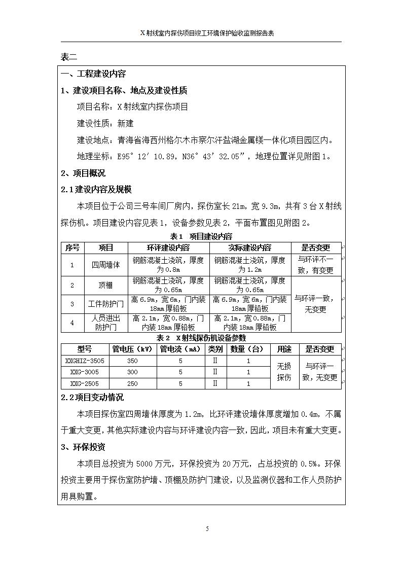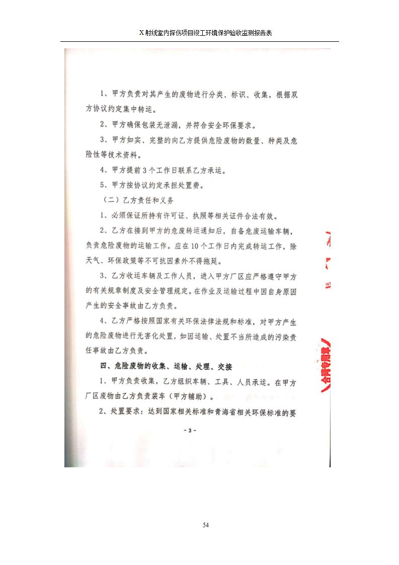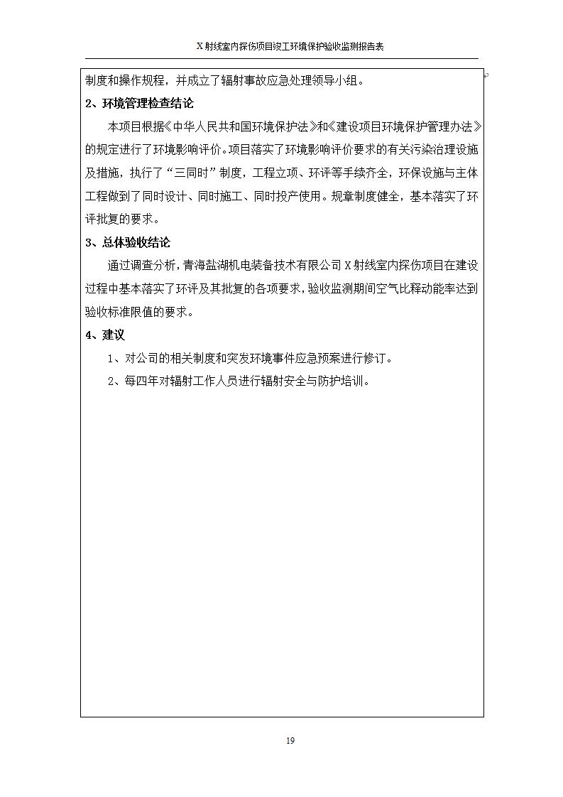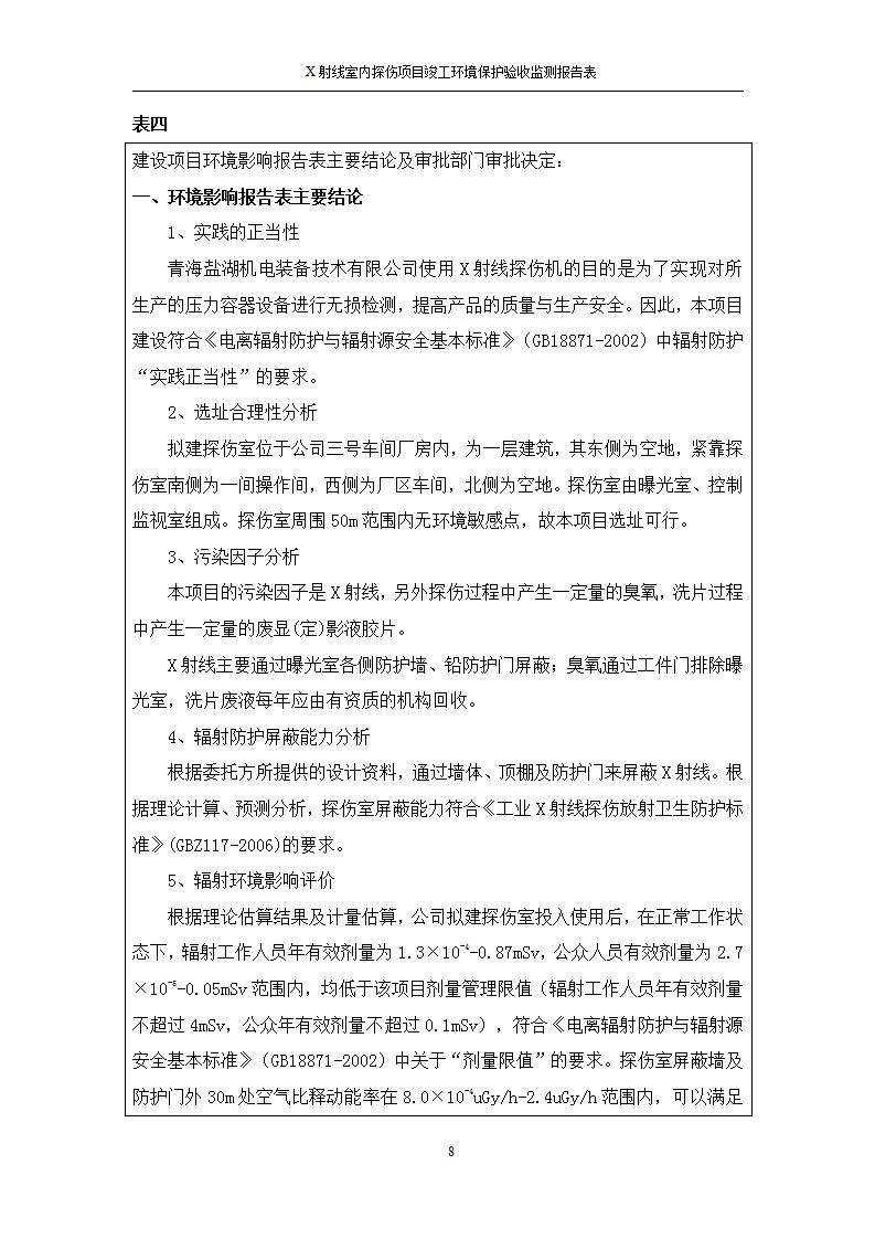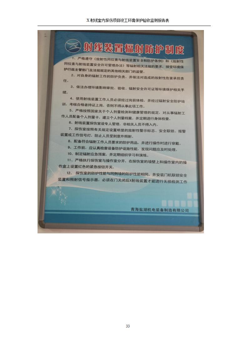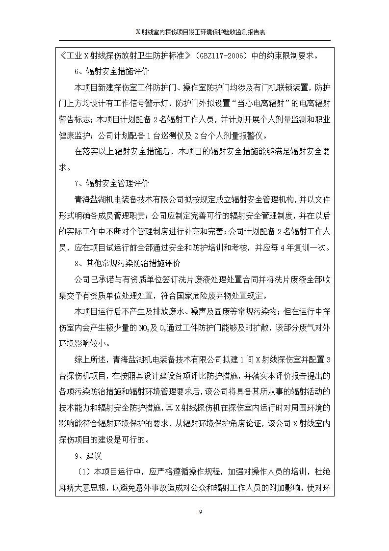 根據(jù)中華人民共和國國務(wù)院令第682號《國務(wù)院關(guān)于修改〈建設(shè)項目環(huán)境保護管理條例〉的決定》和《建設(shè)項目竣工環(huán)境保護驗收暫行辦法》(國務(wù)院令682號),青海鹽湖機電裝備技術(shù)有限公司X射線室內(nèi)探傷項目竣工環(huán)境保護驗收監(jiān)測報告表公示如下。 一、項目名稱:X射線室內(nèi)探傷項目竣工環(huán)境保護驗收監(jiān)測報告表 二、地點:青海省海西州格爾木市察爾汗鹽湖金屬鎂一體化項目園區(qū)內(nèi) 三、建設(shè)單位:青海鹽湖機電裝備技術(shù)有限公司 四、建設(shè)內(nèi)容:本項目位于公司三號車間廠房內(nèi),探傷室長21m,寬9.3m,共有3臺X射線探傷機。 五、聯(lián)系人:楊工 六、聯(lián)系電 話:0971-6515411 七、公示時間:二〇二〇年七月十日至二〇二〇年八月六日 公示期間,對上述公示內(nèi)容如有異議,請以書面形式反饋,個人須署真實姓名,單位須加蓋公章。