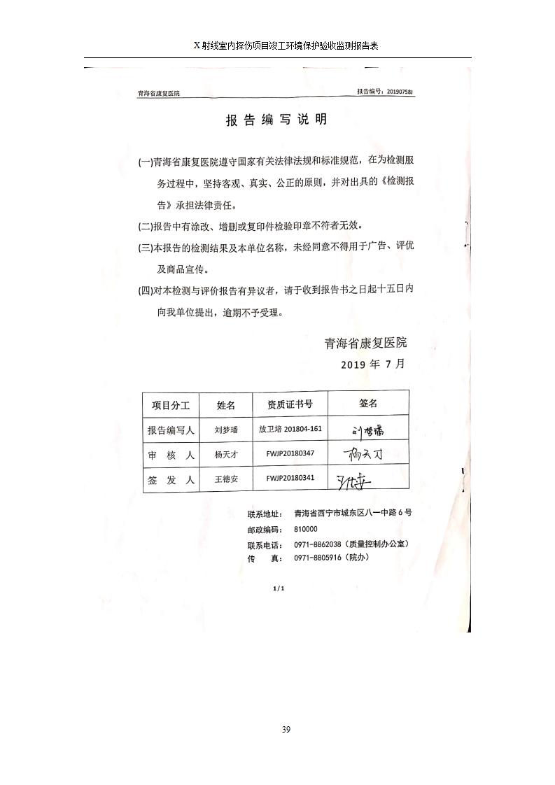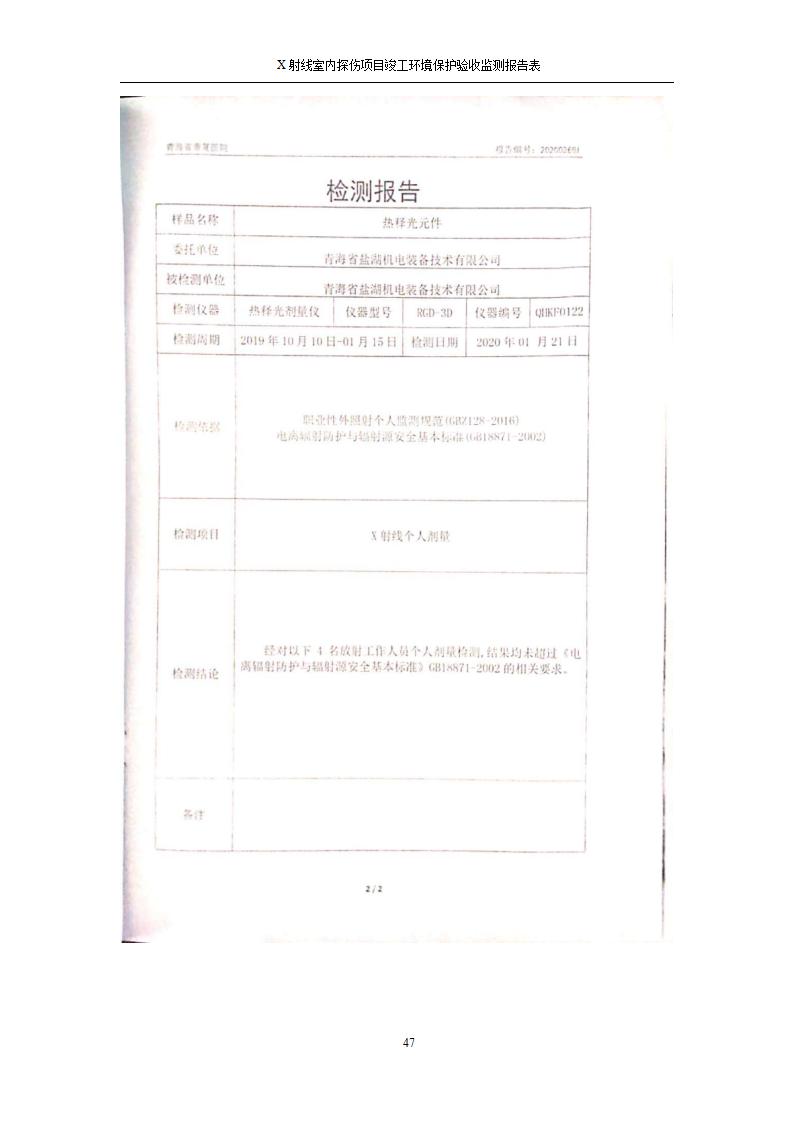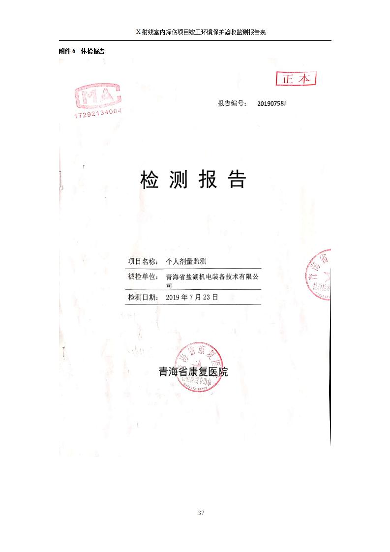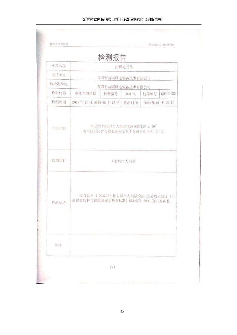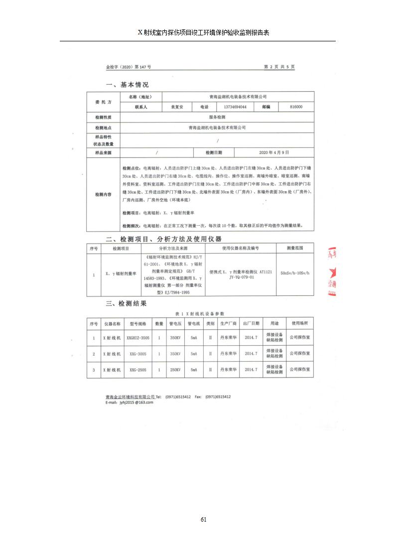 青海鹽湖機電裝備技術(shù)有限公司X射線室內(nèi)探傷項目竣工環(huán)境保護驗收監(jiān)測報告表公示發(fā)布日期:(2020-7-10) 點擊次數(shù):3262 |